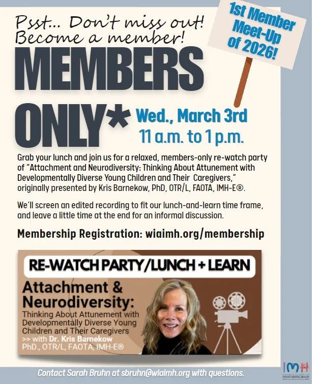 Established in 2001, the Wisconsin Alliance for Infant Mental Health is a statewide non-profit organization dedicated to the promotion of social-emotional learning and relationship-based practices through raising public awareness, providing resources for professional development, and advocating for policies that are in the best interest of infants, young children, and their families.