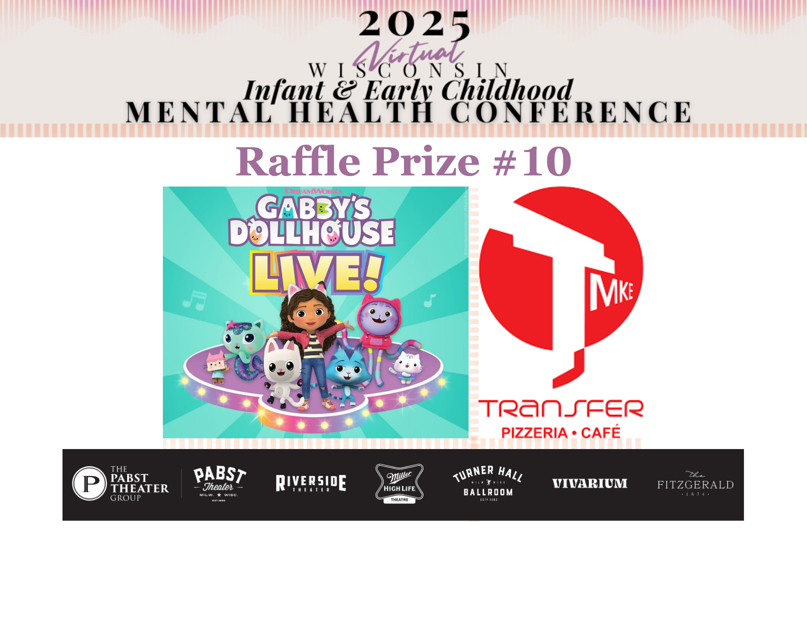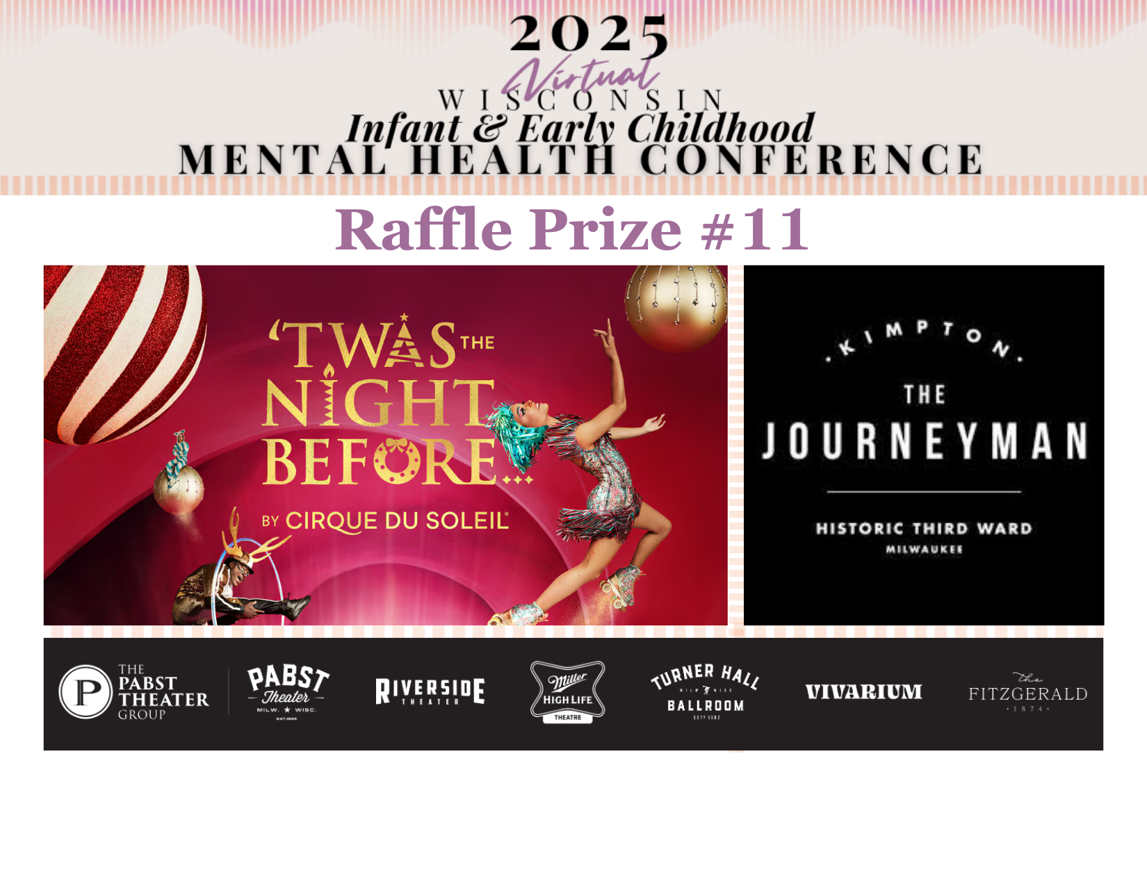 *Prizes are from various businesses/organizations throughout the state of Wisconsin, including Madison and Milwaukee. Each registrant receives one virtual "raffle ticket.” Those registered can click here to go to the Conference Connection page to enter into the raffle drawing. Winners will be announced in the post-conference follow-up email. Prizes will be mailed to winners.